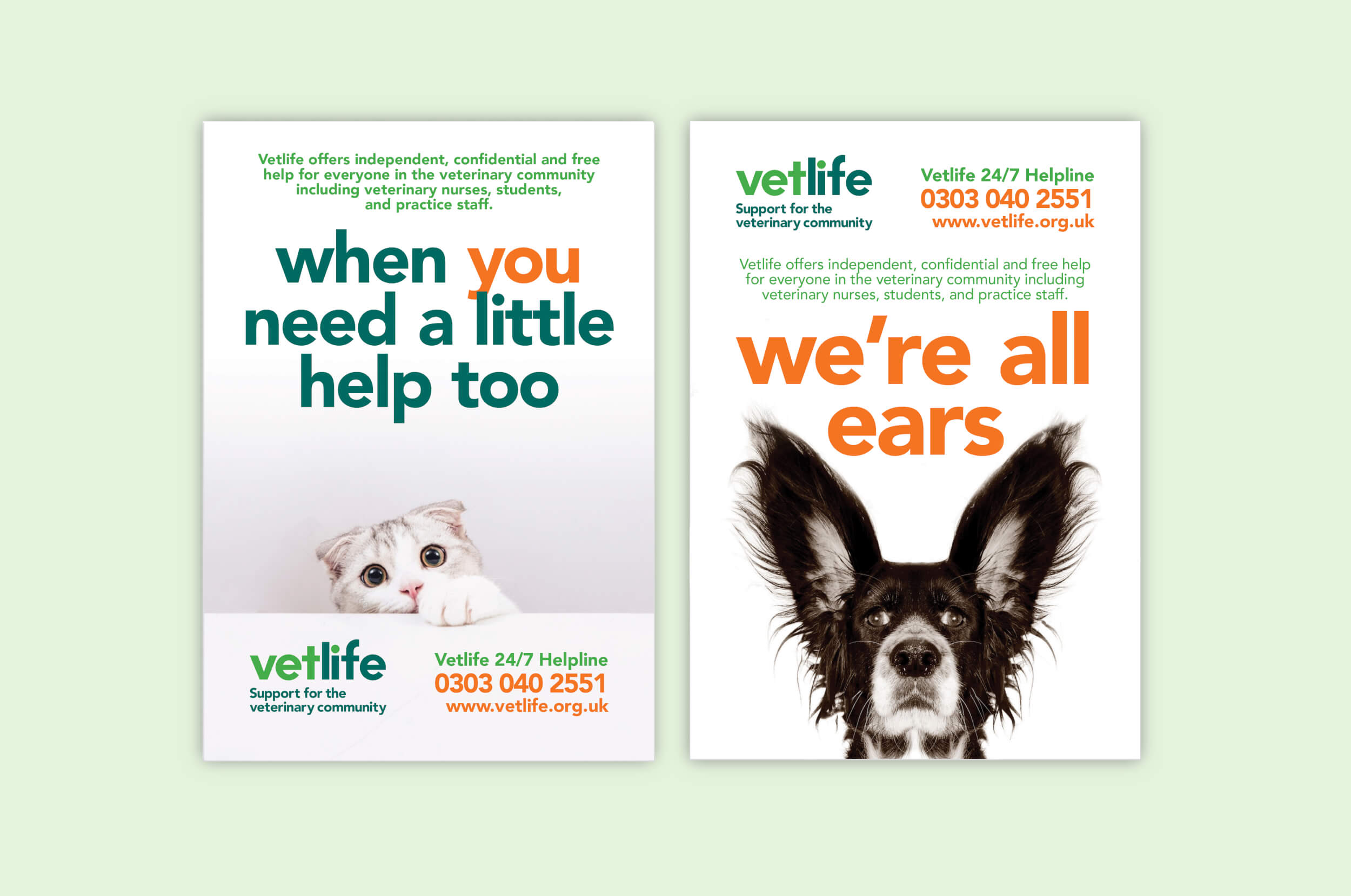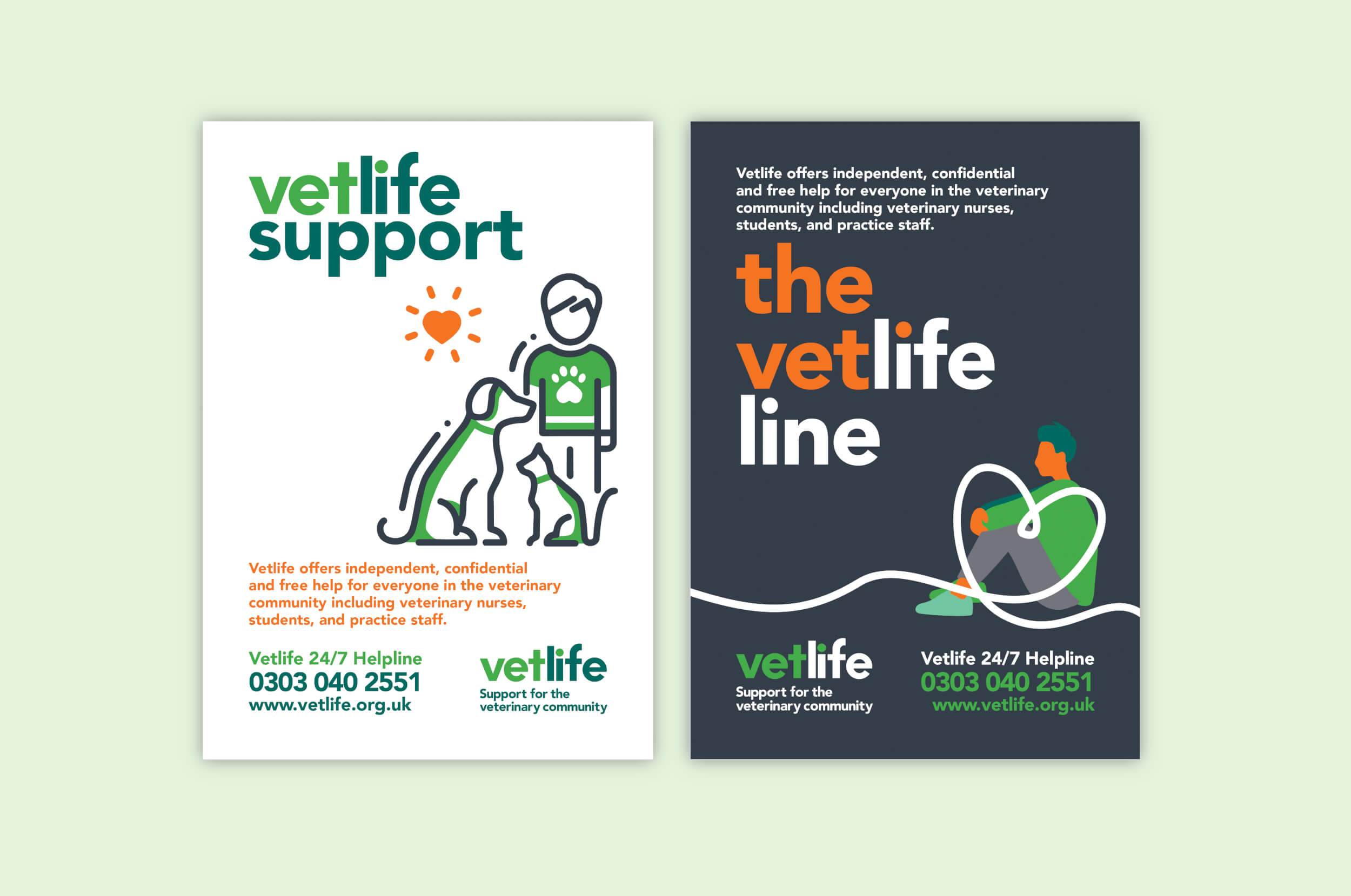 Vetlife offers three core services to vets: a helpline, health support and financial support. As part of a wider brand audit, they wanted to refresh an existing event flyer that had been used for several years. The brief called for a new design that would catch attention in a busy event environment while staying true to the brand. The flyer needed to clearly communicate what Vetlife does, and how to get in touch.
